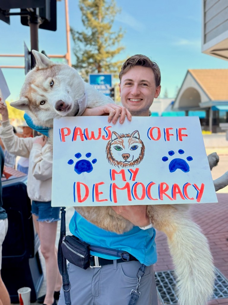 Clever signs, music, and lots of enthusiasm — all part of No Kings Day 3 in Menlo Park on March 28. Click on the photos below to view full size.